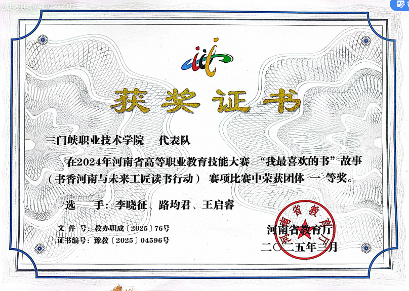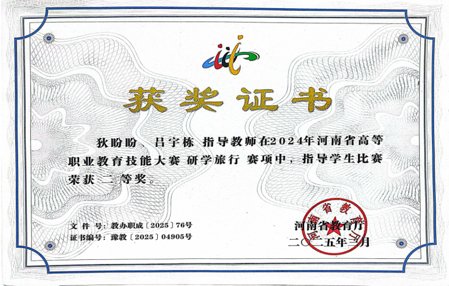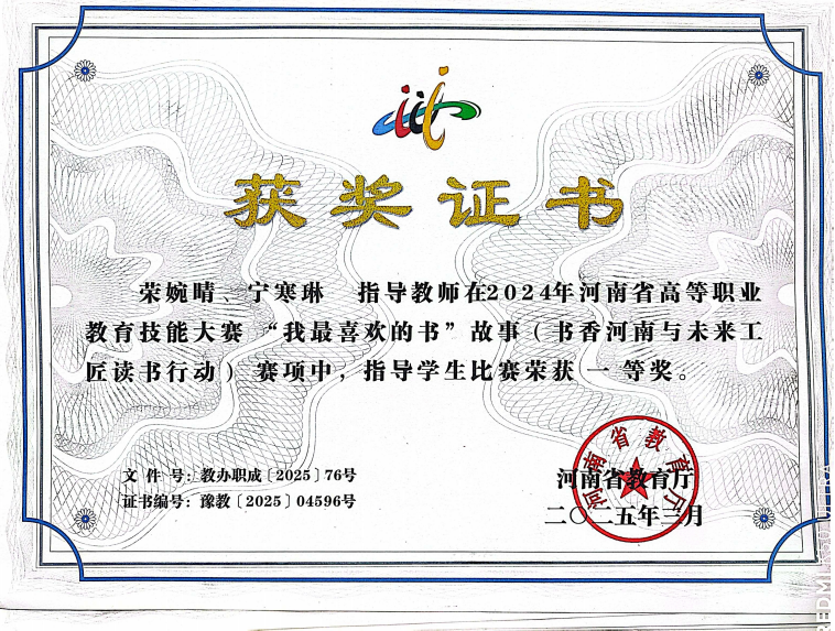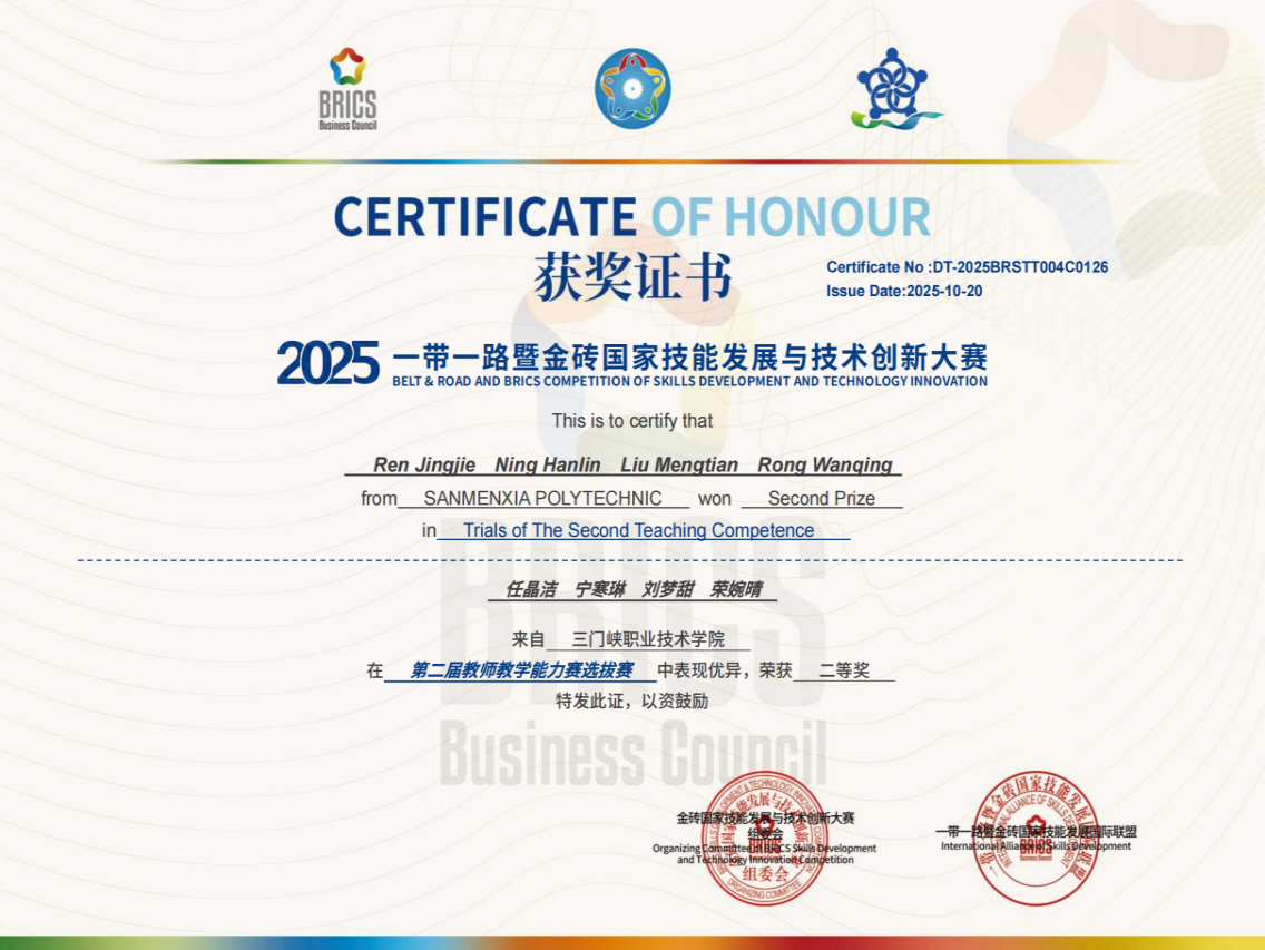 生竞赛成果丰硕。坚持以赛促学、以赛促创,全年在省级以上各类大赛中获奖30余项。其中,河南省高等职业公司产品能力竞赛荣获一等奖1项;河南省员工高等职业教育技能竞赛荣获一等奖1项、二等奖5项、三等奖7项。河南省老员工“挑战杯”竞赛荣获三等奖6项。“一带一路”暨金砖国家技能发展与技术创新大赛教师赛荣获国家级二等奖1项;获员工赛国家级一等奖1项、国家级二等奖2项、国家级三等奖1项;省级一等奖2项、省级二等奖2项;省级三等奖1项。