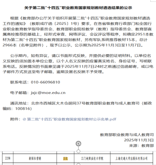 专业与课程建设标杆涌现。主动对接数字经济与产业变革,优化专业布局。课程建设取得历史性突破。《新媒体营销》成功入选国家在线精品课程,《直播营销与运营》等三门课程获评省级精品在线开放课程,出版《沟通技巧》等多部特色教材,课程思政实现全覆盖。