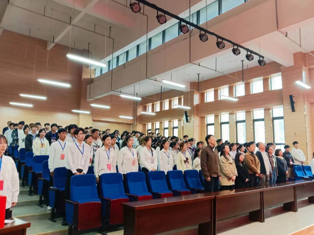 大会在庄严肃穆的国歌声中拉开帷幕,全体参会人员肃立,奏唱国歌。