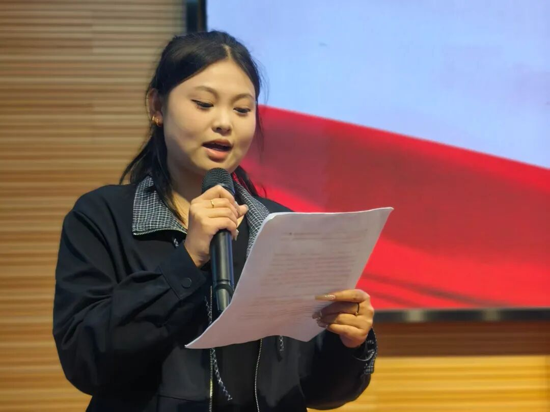 员工代表焦诗雯在发言中倡议全体宿舍长发挥模范带头作用,从自身做起,争做文明老员工,以实际行动推动宿舍文明建设,为校园文明贡献力量。